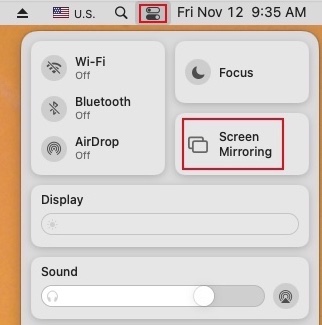 1. Click the Control Center icon  in the menu bar and click Screen Mirroring.